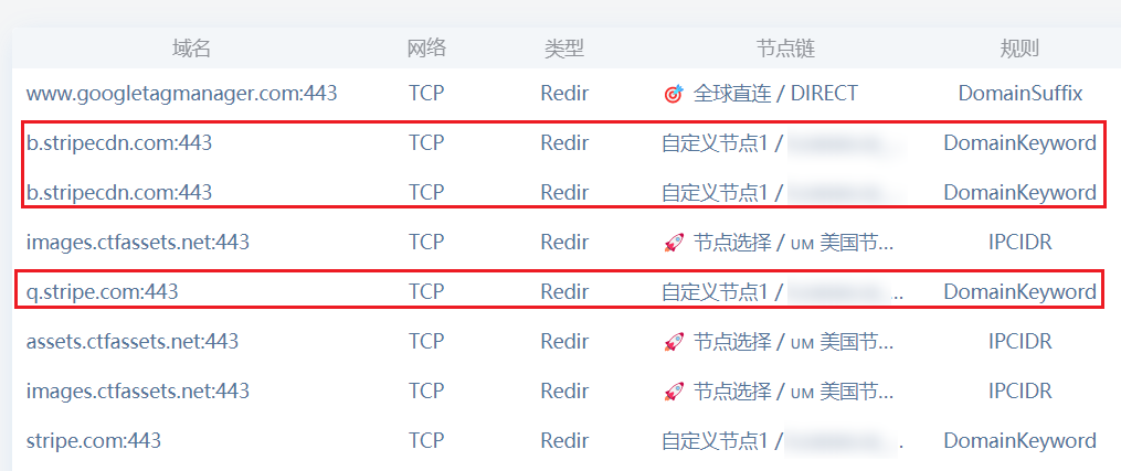 但自定义规则中其他域名如stripe的规则生效了,唯独linkedin的规则无效。