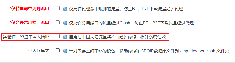此选项的描述:启用后中国大陆流量将不再经过内核,提升系统性能