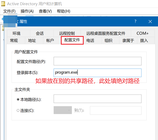 或者也可以放入能够让域内成员访问的共享目录,但是登录脚本要使用绝对路径。
