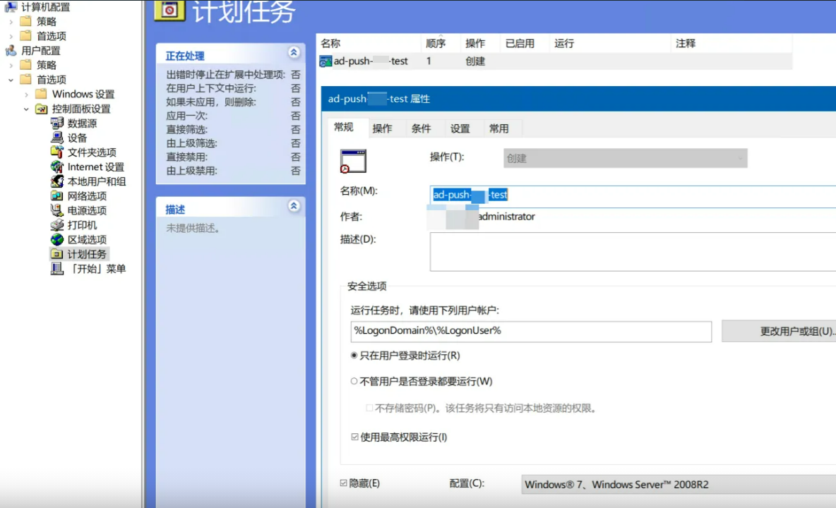 运行任务使用的用户%LogonDomain%\%LogonUser% 即 AD域名\登录用户